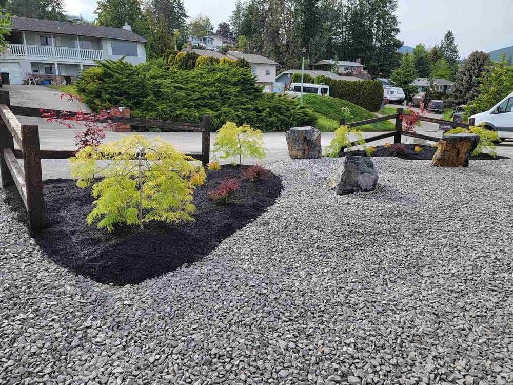 Gravel and decorative stone garden with fencing by Back 40 Landscaping in Abbotsford, BC