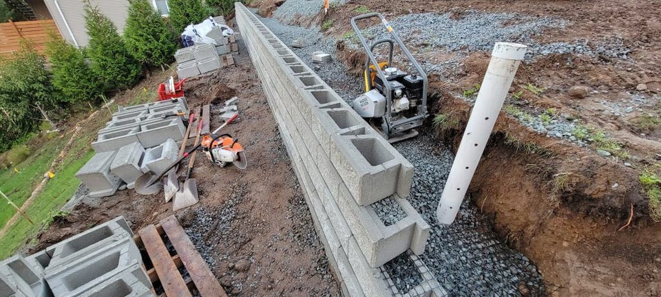 For instance, in Abbotsford B.C the maximum height you can build a retaining wall without a permit is 4’. If you build a 3’ high retaining wall you would not need a permit. However, if you had an additional weight surcharge on top of that wall you may want it designed by a structural engineer to ensure the retaining wall can handle that.