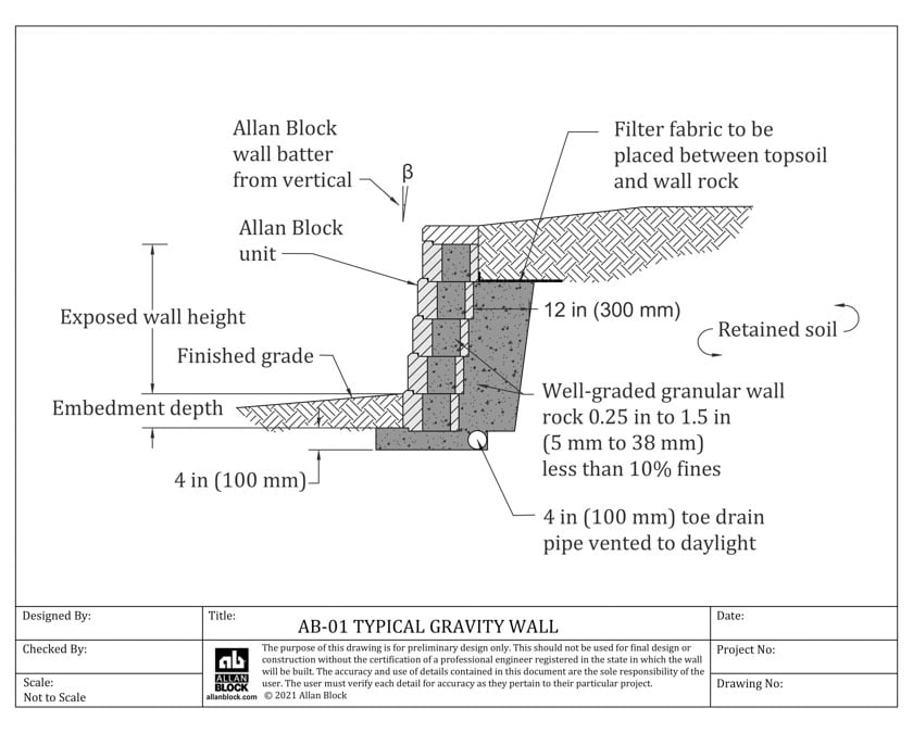An engineer will design a retaining wall and take into account the sites soil, elevations, and use.