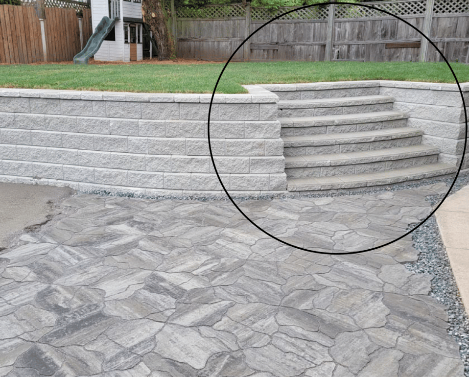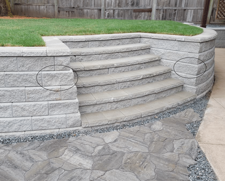 A common misconception is that a retaining wall is built simply by stacking blocks. For a good percentage of a wall that’s true, but there is a lot of hand work when building stairs, and details usually on both ends of the wall.