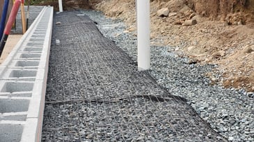Excavation for a retaining wall is the process of removing soil to make way for the gravel and retaining wall blocks.