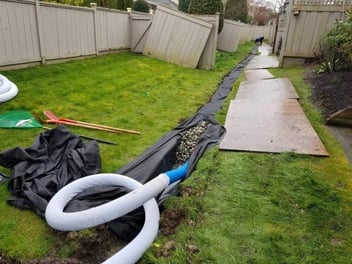 When buying a house with a yard, we envision countless get togethers with friends, evenings sitting by the fire, and sunny days spent outside watching our children play. In the Fraser Valley we value bright sunny days because sometimes it feels like we rarely get them. It can be so disappointing when we go to use our yard, and it is still water logged from the rain that happened days ago. If you have this problem, having a French Drain installed can help you regain your outdoor space back.